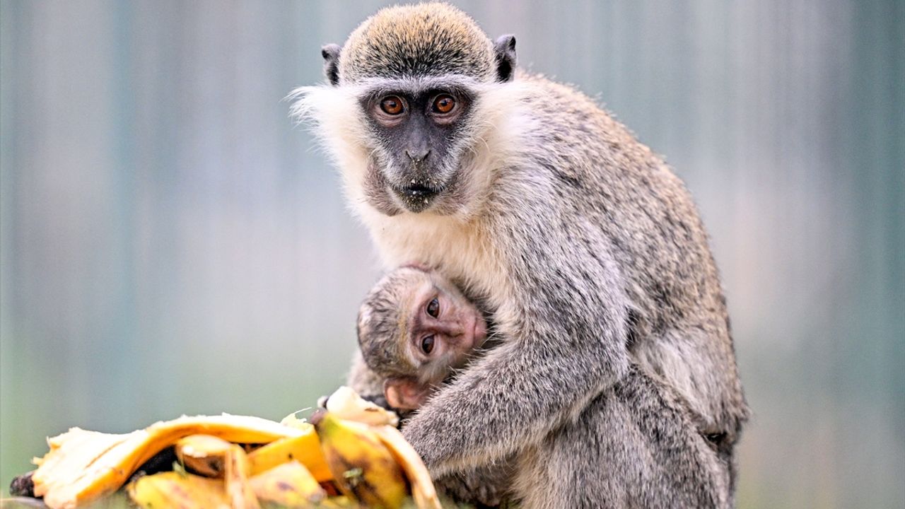 Dört mevsim özenle beslenen maymunların muzları ve ikramları yediği sırada güzel görüntüler ortaya çıktı.