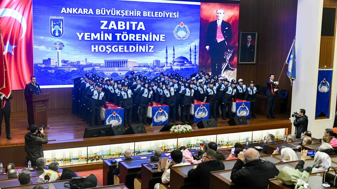 ANKARA (AA) - Ankara Büyükşehir Belediyesi (ABB) Zabıta Daire Başkanlığı'nda 2 yıllık aday memurluk sürecini başarıyla tamamlayan 110 zabıta memuru için yemin töreni düzenlendi.