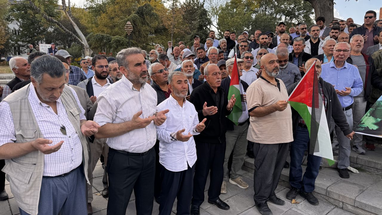 Ulu Cami önünde ellerinde Türk ve Filistin bayraklarıyla toplanan vatandaşlar, 'Kahrolsun İsrail' sloganları attı.