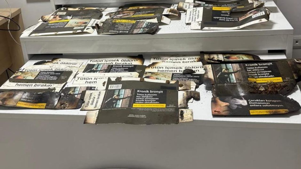 Yapılan aramada bir sigara dolum makinesi ele geçirildi. B.E. ve G.E. gözaltına alındı. Yanan malzemelerle birlikte dolum makinesine de el konuldu.