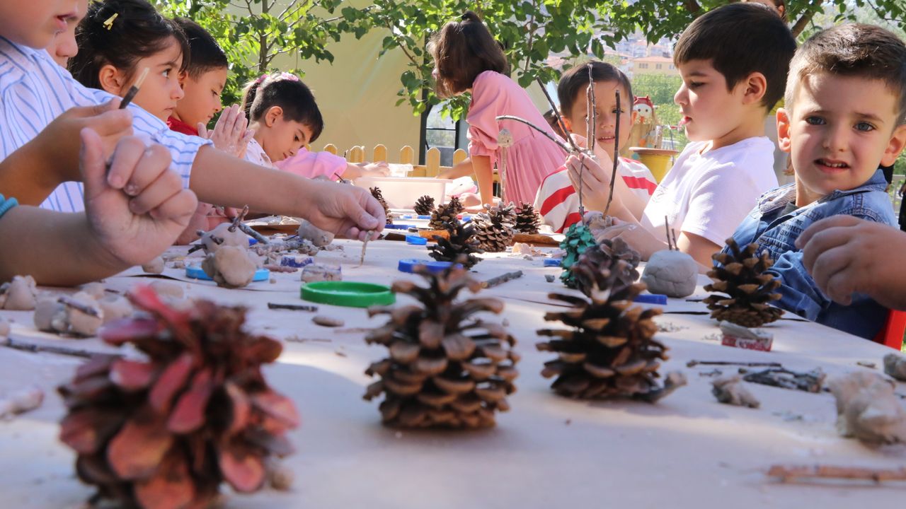 Dış mekan sınıfı olarak iglo çadır kurduklarını, burada fen ve doğa etkinlikleri yaptıklarını belirten Yurdunkulu, 'Çocuklarla kompost gübre yaptık. Yağmur hasadı bidonlarımızı hazırladık, lavanta bahçelerimizi diktik. Proje kapsamında yatay ve dikey bahçeler isteniyordu. Çocuklarla 5 kiloluk bidonlara çileklerimizi dikerek dikey bahçelerimizi oluşturduk. Duvarlarımızda araba lastikleri kullanarak dikey bahçeler oluşturduk.' dedi.