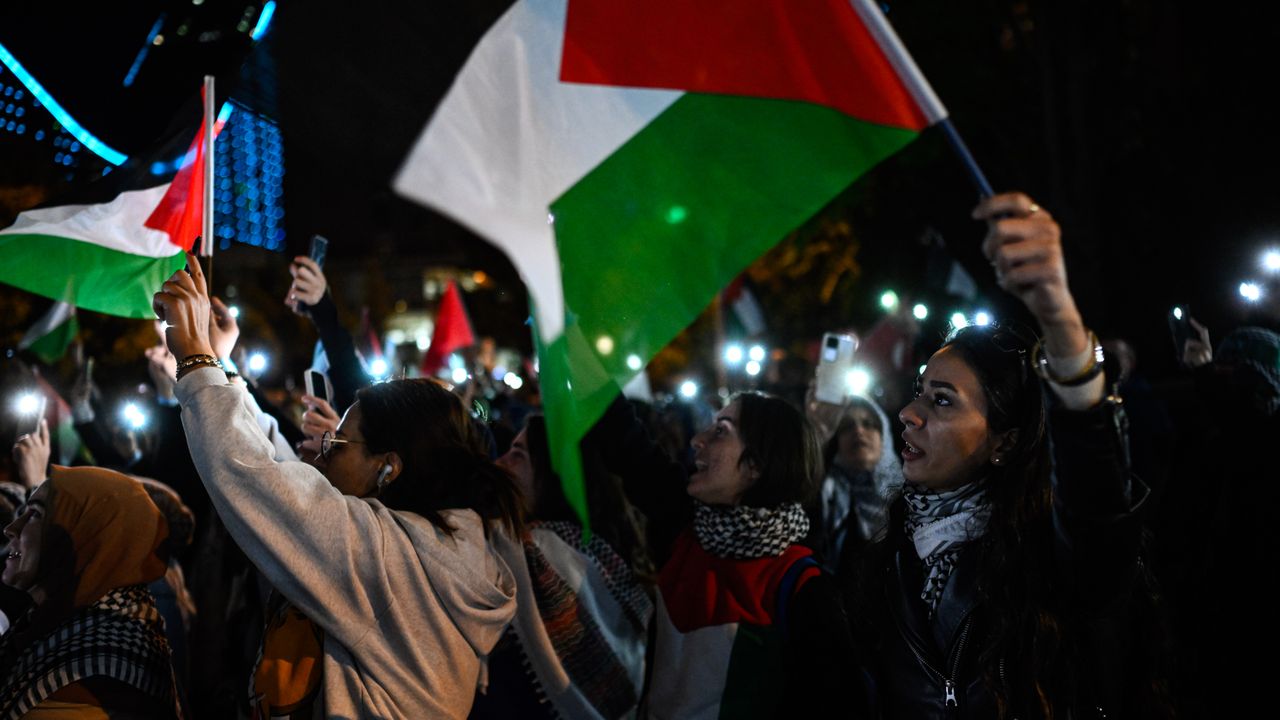 Ankara Filistin Dayanışma Platformu (ANFİDAP) tarafından yapılan çağrı üzerine üyeler ve vatandaşlar, ABD'nin Ankara Büyükelçiliği önünde toplandı.