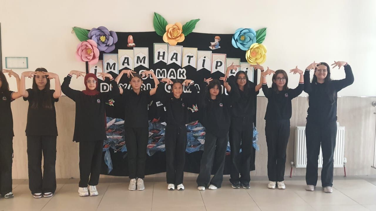 Etkinlikte öğrenciler işaret diliyle 'Filistin için dua ediyoruz' ifadesini kullanarak dayanışma mesajı verdi.