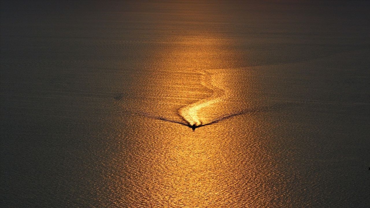 Gün batımı sırasında dronla kaydedilen görüntülere, gökyüzündeki uçaklar ile denizdeki tekneler de yansıdı.