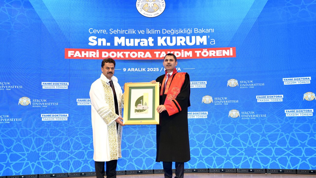 KONYA (AA) - Çevre, Şehircilik ve İklim Değişikliği Bakanı Murat Kurum'a, mezunu olduğu Selçuk Üniversitesi'nde fahri doktora unvanı takdim edildi.