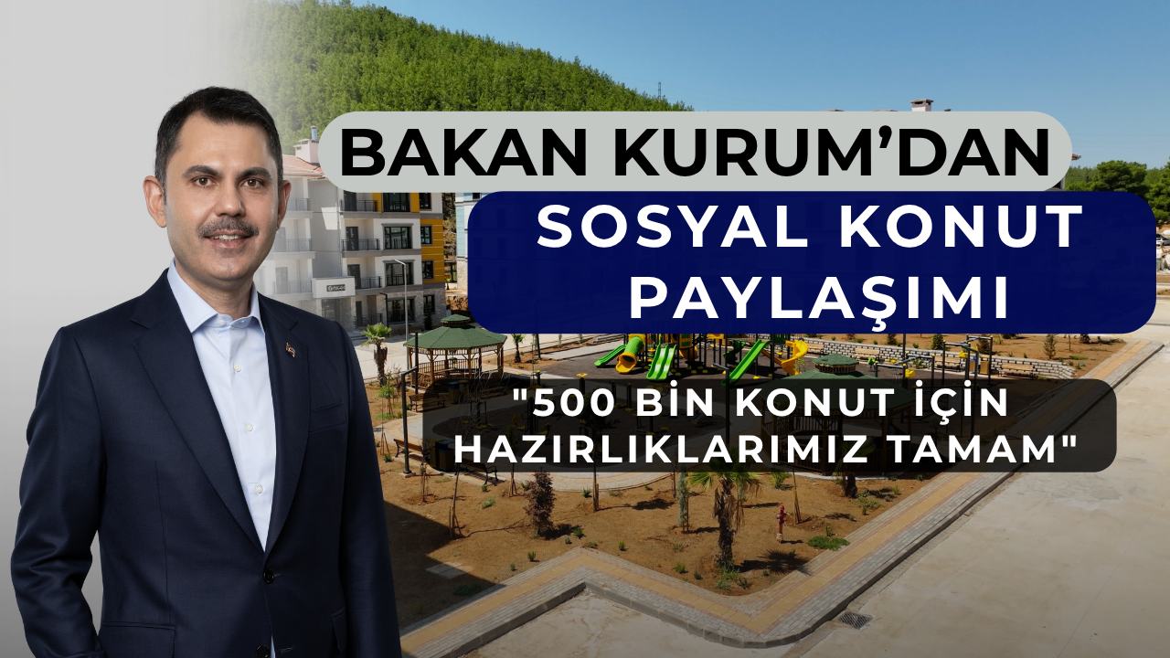 Bakan Kurum yıl sonunda başlayacak 500 bin yeni sosyal konut projesine yönelik mesajında, “Niyazi kardeşimizin, Güllü ablamızın heyecanına, mutluluğuna bakar mısınız? Bu mutluluğu tüm vatandaşlarımızın gözünde görmek için, 500.000 yeni konut için TOKİ ile hazırlıklarımız tamam” ifadelerini kullandı.