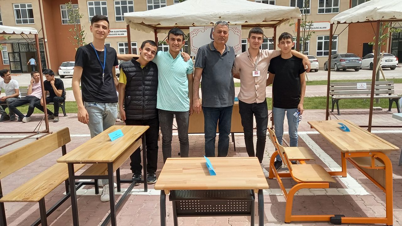 Beypazarı Fatih Mesleki ve Teknik Anadolu Lisesi'nin atölyelerinde okul sırası, öğretmen dolabı, dezenfektan ve kolonya gibi ürün ve eşyalar üretiliyor.