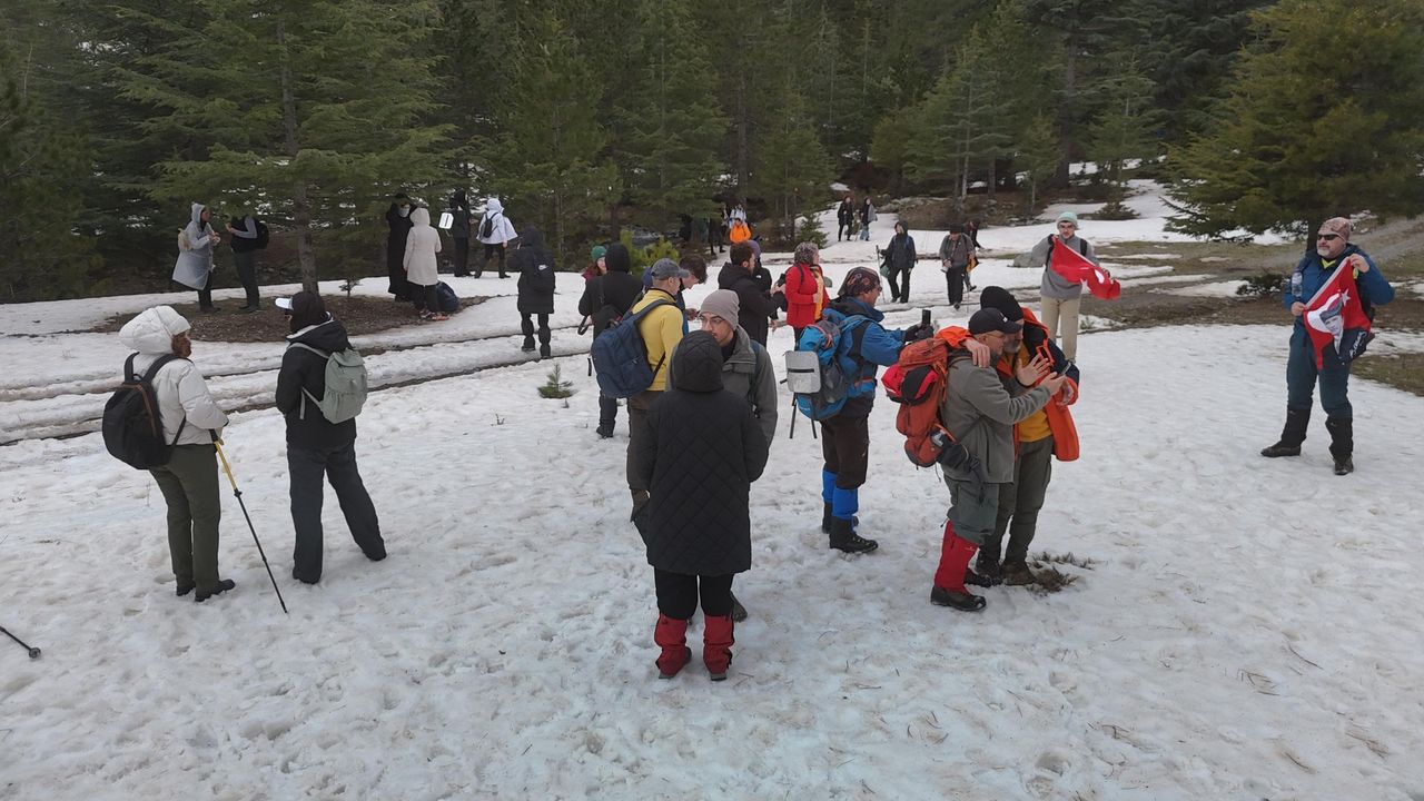 Katılımcılar, beyaz örtüyle kaplı ormanda, eriyen karların ve yağmurun oluşturduğu pınarlar arasında coşkulu bir yürüyüş yaptı. Karlarla kaplı doğa, doğaseverlere unutulmaz anlar yaşattı.