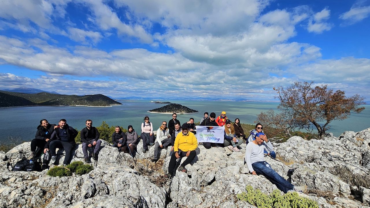 Hacıakif Mağarasını da gezen doğa severler, ardından adanan en yüksek tepesine tırmandı.