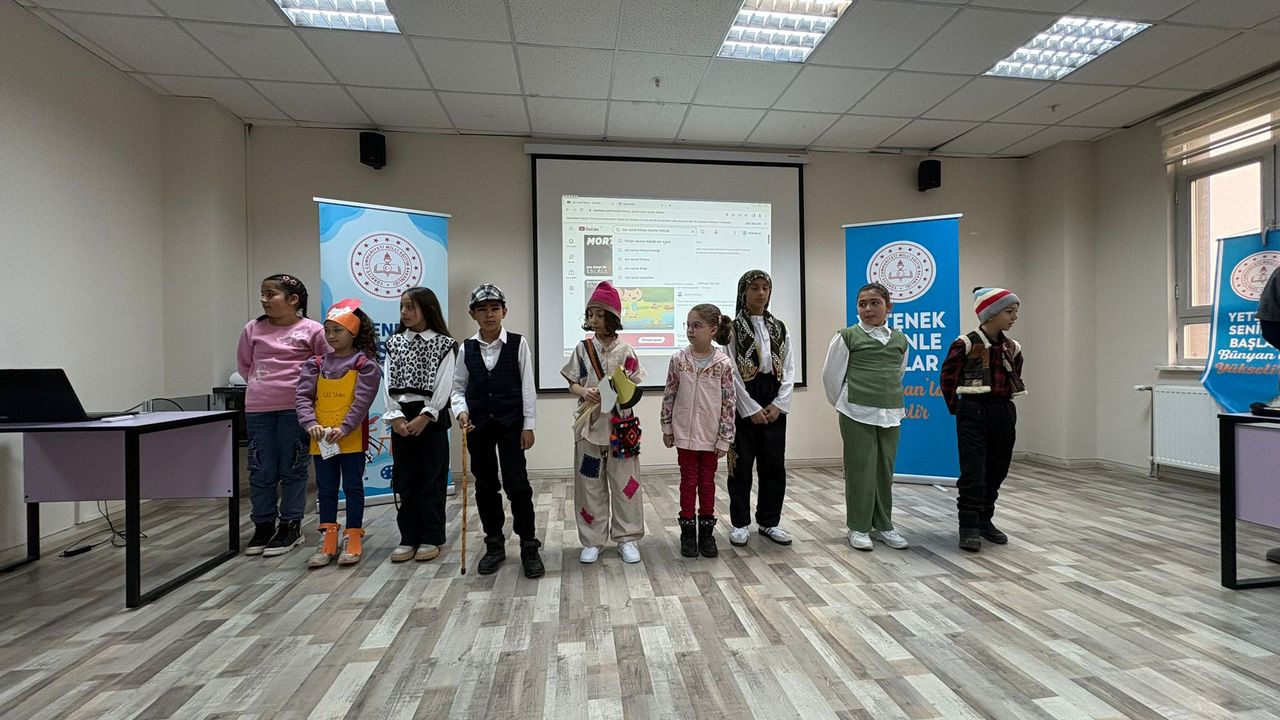 İlkokul ve ortaokul kategorilerinde düzenlenen yarışmada, öğrenciler Anadolu masallarını sahnede anlatarak hem dil becerilerini hem de sahne performanslarını sergiledi.