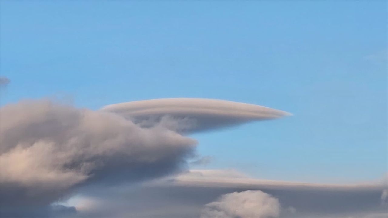 Çankırı semalarında çok katmanlı oluşan mercek bulutu, Çankırı-Ankara kara yolu Tüney köyü bölgesinde görüldü.