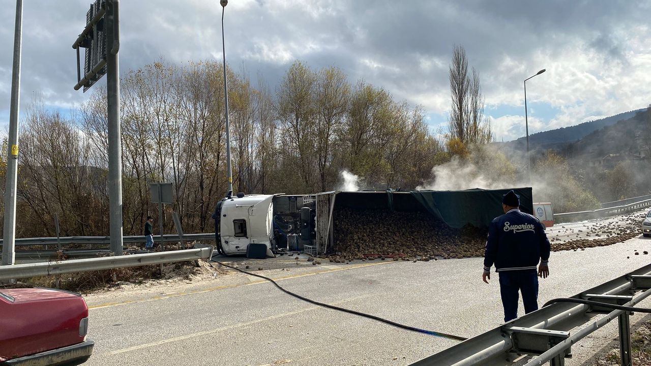 Yola saçılan pancarlar nedeniyle polis ekiplerince trafik kontrollü sağlandı. Yolun temizlenmesinin ardından ulaşım normale döndü.