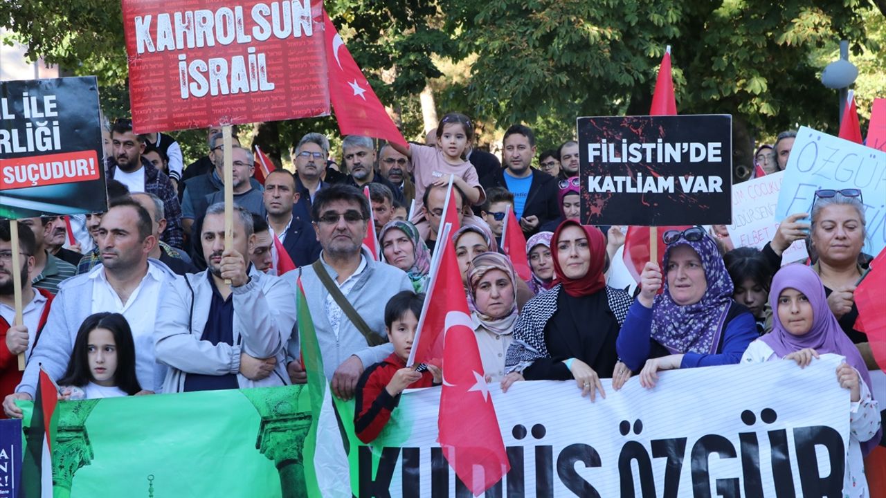 Konuşmanın ardından İl Müftüsü Mehmet Şahin tarafından dua edildi, İsrail aleyhinde sloganlar atıldı.