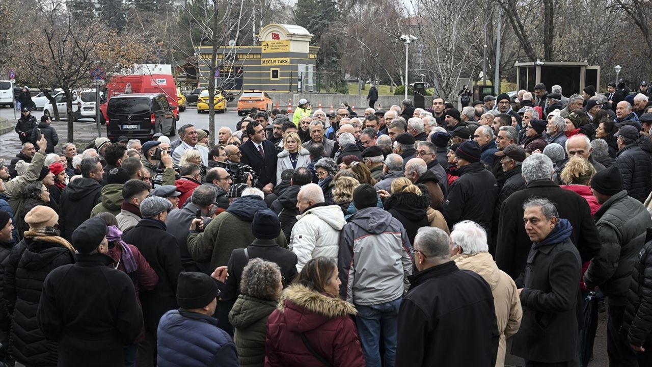 Meclis önündeki programa, CHP milletvekilleri, sendika temsilcileri ve emekliler katıldı.
