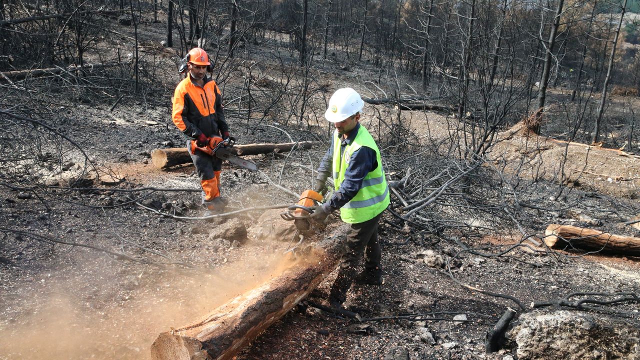 Tekrar yeşermesi mümkün olmayacak kadar yanan ağaçlar işaretlenip kesiliyor. Diğerlerinde ise kendini yenilemesi için çalışmalar yürütülüyor.