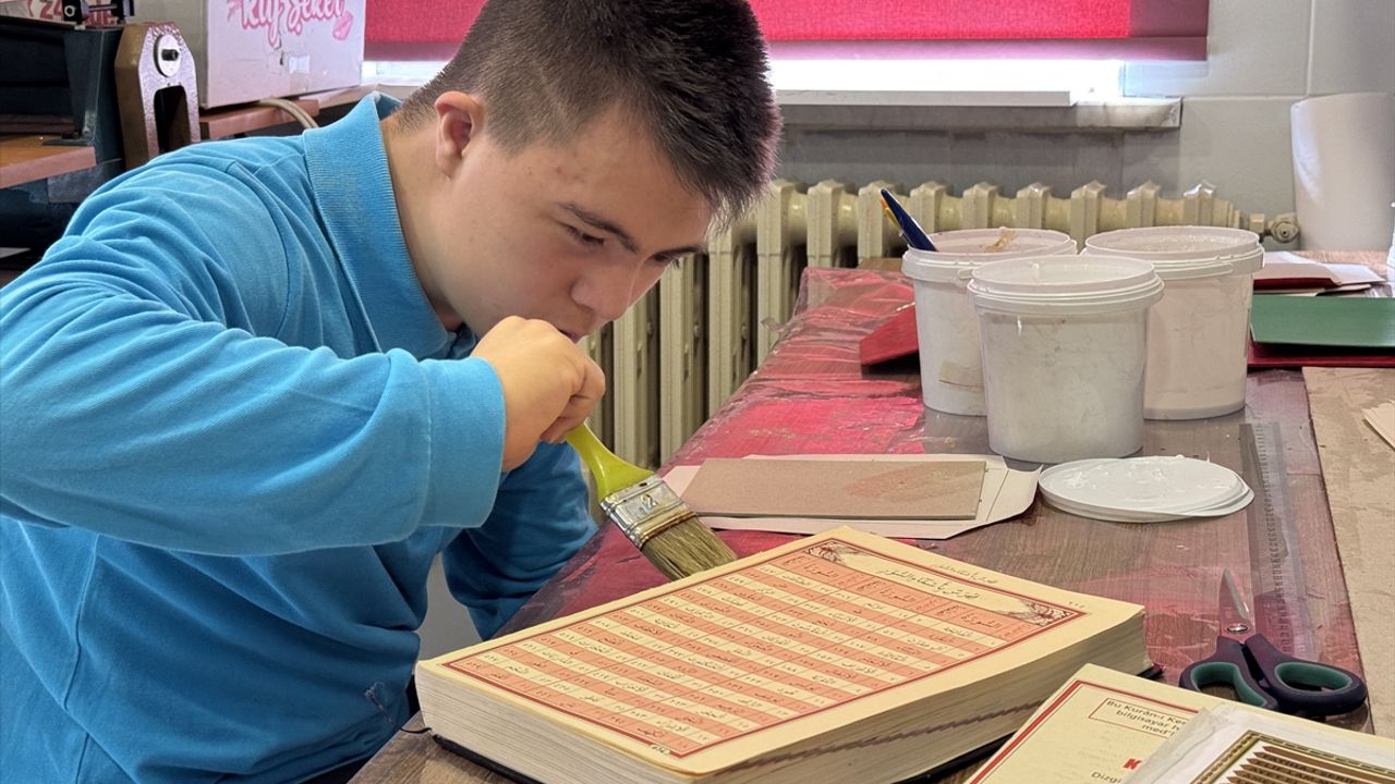 Öğretmenlerinin üzerine titrediği Harun Efe, geleneksel Türk İslam sanatında ciltlemeyi de öğreniyor. Bu alanda 3 aydır eğitim alan Türk, mahalleden getirilen yıpranmış Kur'an-ı Kerim'in cilt ve kapağını yeniledi.
