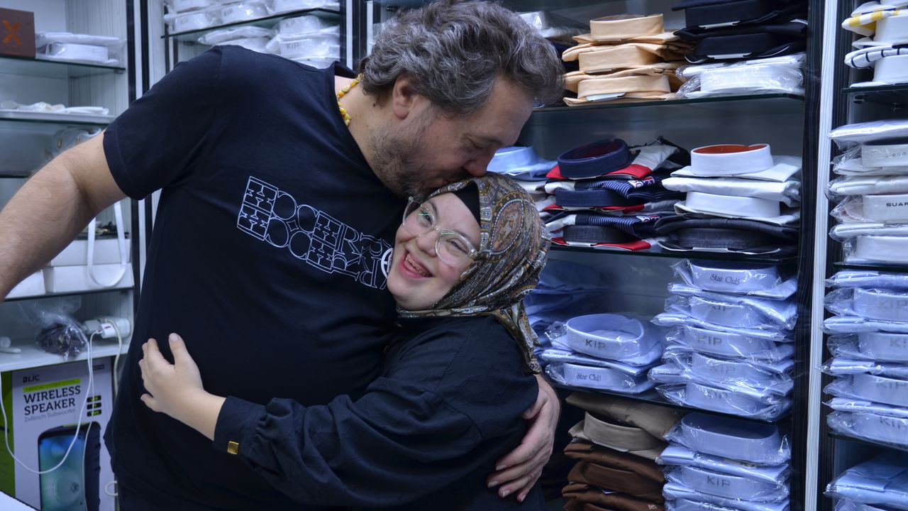 Kent merkezinde binlerce yıldır ticari hayatın sürdüğü tarihi Bedesten Çarşısı'nda konfeksiyon ürünleri satan İbrahim Uçar'ın down sendromlu kızı Merve, her gün babasına yardım etmek için iş yerine geliyor.