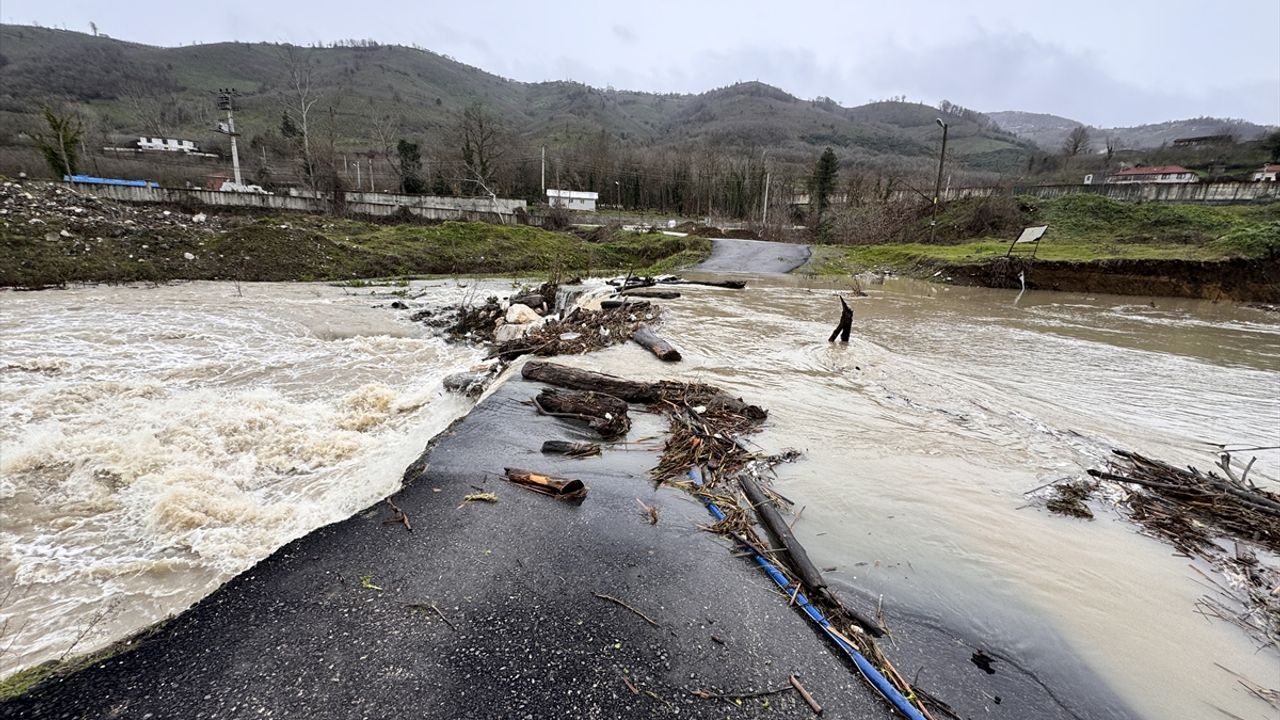 DÜZCE (AA) - Düzce'de 2 köye geçişi sağlayan Küçük Melen Çayı üzerindeki yol, sağanağın ardından yükselen su nedeniyle ulaşıma kapandı.