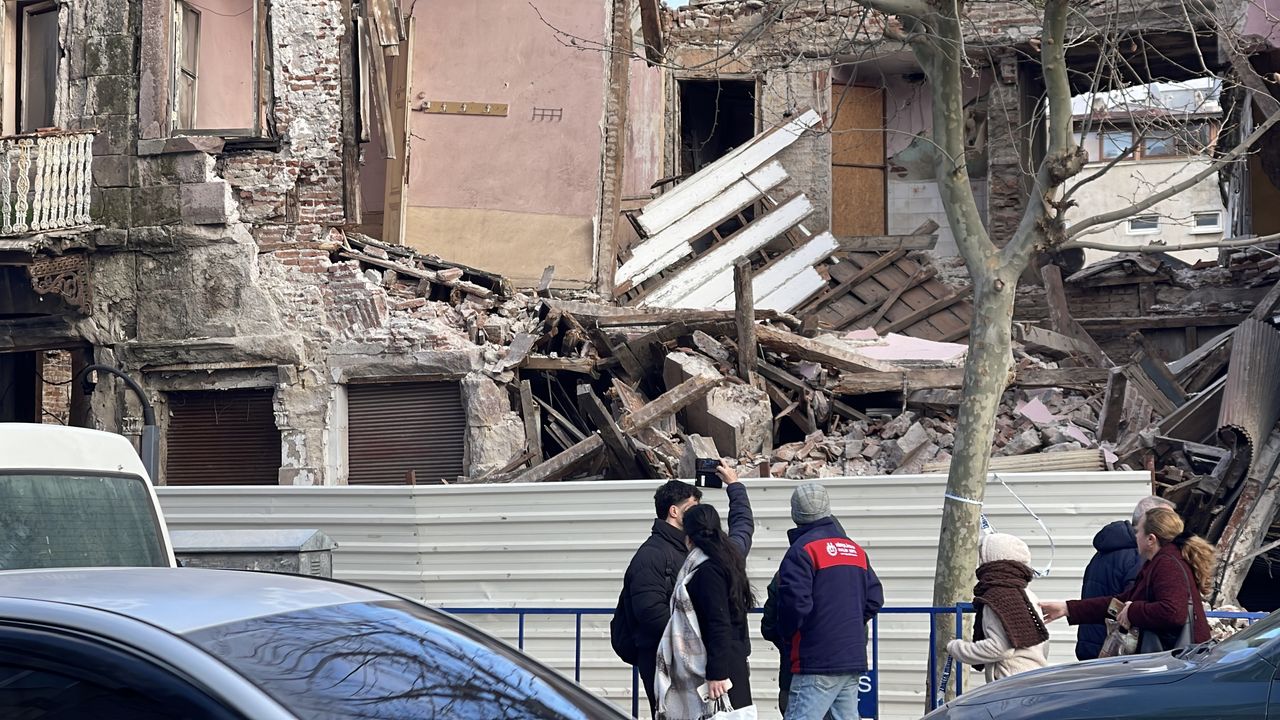 Duvarının bir kısmı, geçtiğimiz ay yoğun yağışların etkisiyle yıkılan Camivasat Mahallesi Menderes Bulvarı'nda bulunan ve 1913-1918 yıllarında inşa edilen tarihi İstanbul Hanı'nın bir bölümü de sert esen poyraza dayanamayarak çöktü.