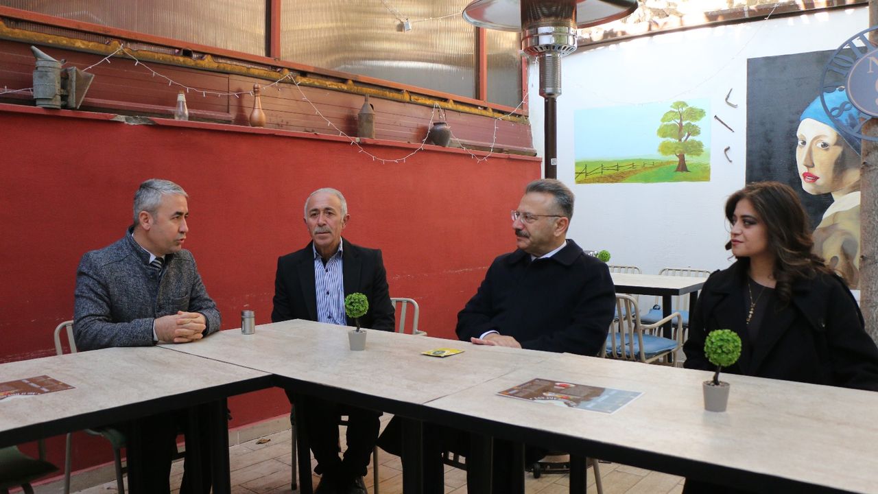 Ziyarette Güler'in girişimcilik yolculuğuna dair bilgi alan Aksoy, işletmede kahve içerek Güler'e çalışma hayatında başarılar diledi.