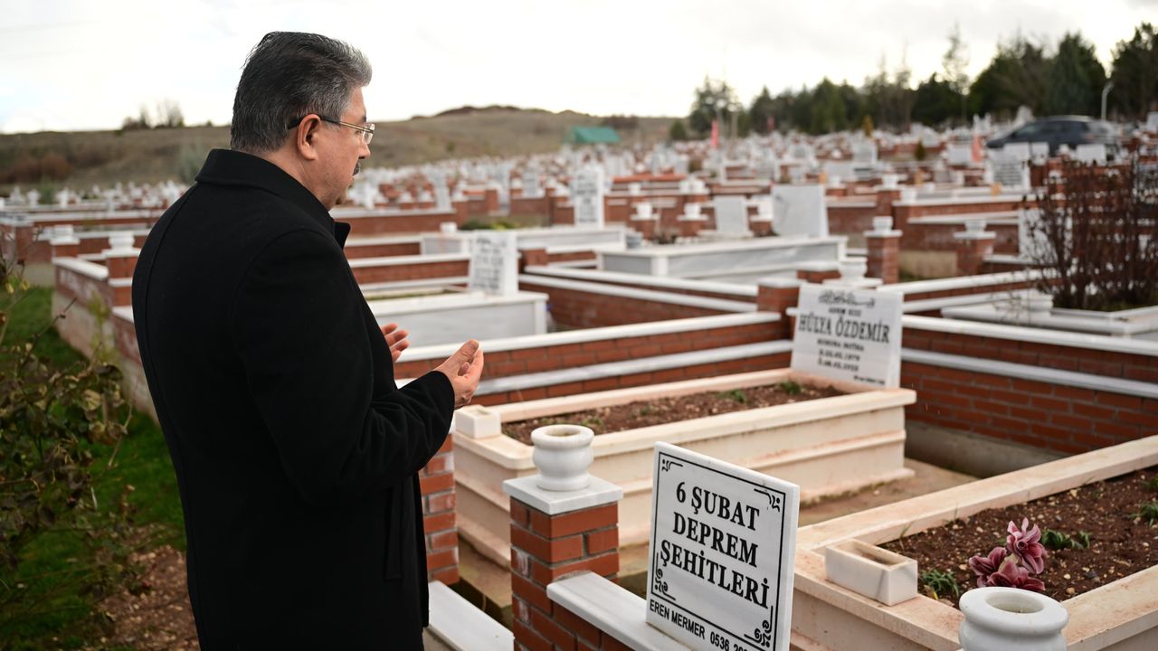 Vali Yılmaz, 6 Şubat'taki depremlerde hayatını kaybedenlerin Eskişehir Büyükşehir Belediyesi Asri Mezarlığı'ndaki kabirlerine ziyarette bulundu.