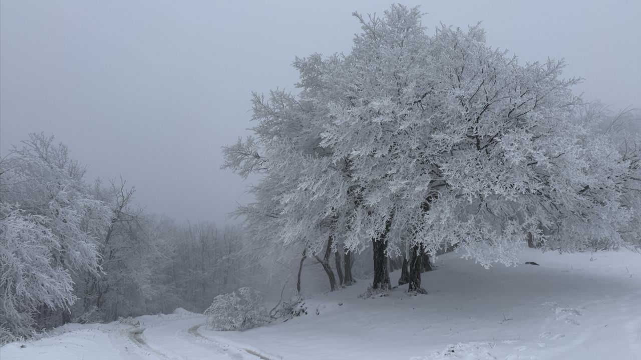 Kartaltepe Tabiat Parkı'nda karla örtülen ormanlık alan, kartpostallık manzaralar sundu.