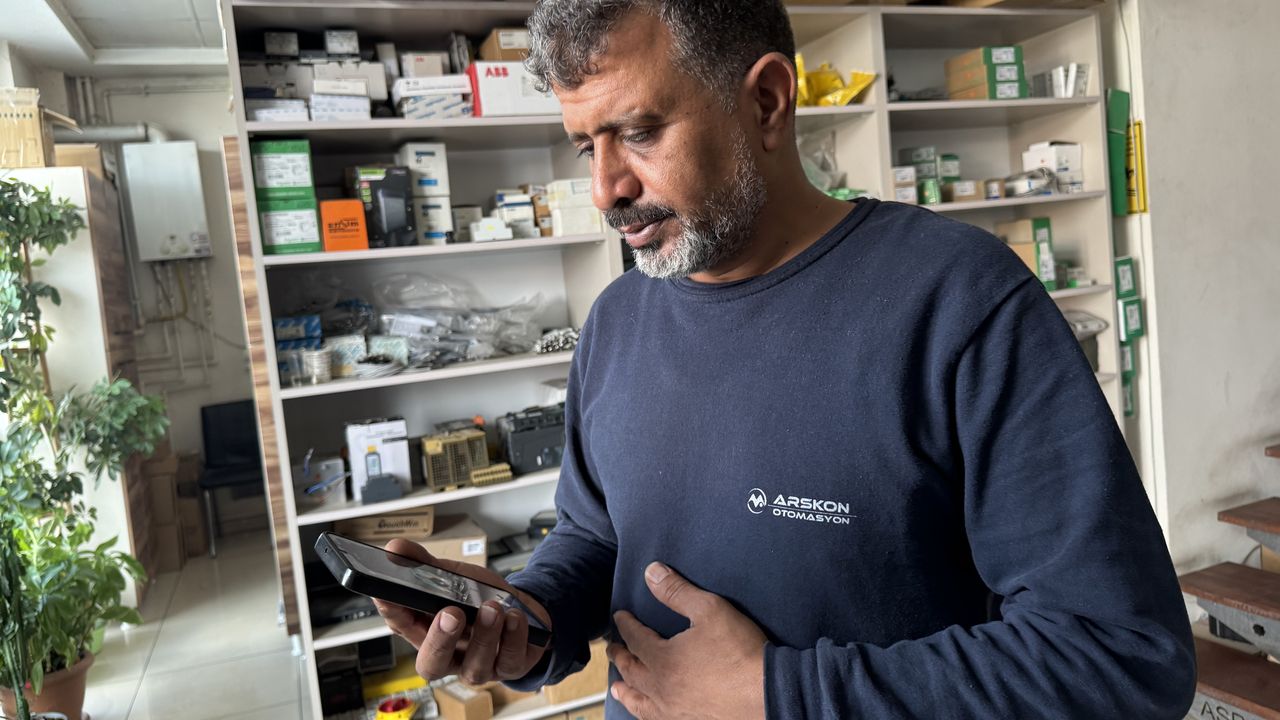 Konya'da bir sanayi sitesindeki firmada çalışan İnmilad, Gazze Şeridi'ndeki kamplarda yaşayan ailesiyle zaman zaman telefonda görüşüyor.