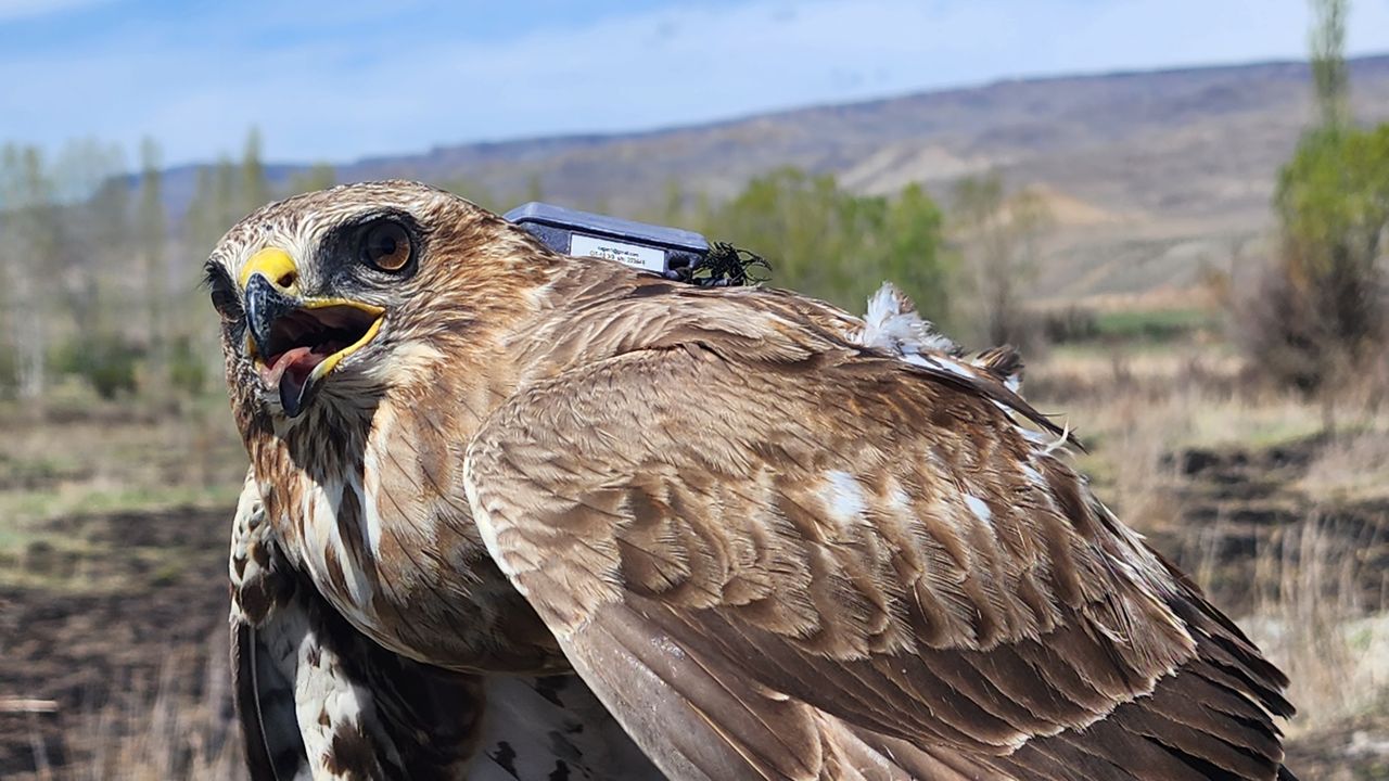 KuzeyDoğa ekibi, 9 Nisan 2023'te ağlara takılan bir bozkır şahinine uydu vericisi takarak doğal ortamına saldı.