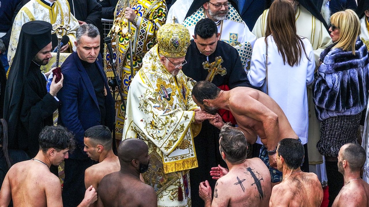 Patrik Bartholomeos'un suya attığı haçı çıkarmak için yaklaşık 30 kişi denize atladı. Vasilios Konstantinidis, haçı denizden çıkarmayı başaran kişi oldu.