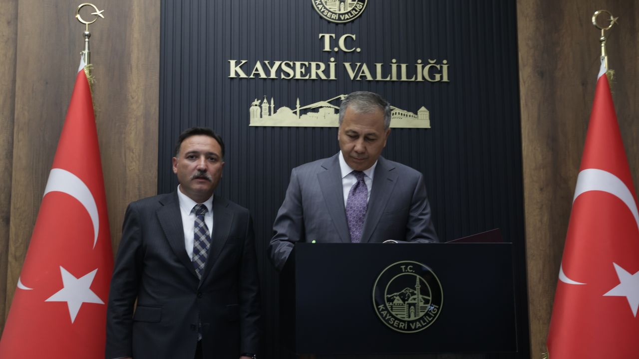 Kayseri Valisi Gökmen Çiçek'i makamında ziyaret eden Yerlikaya, Valilik Şeref Defteri'ni imzaladı.