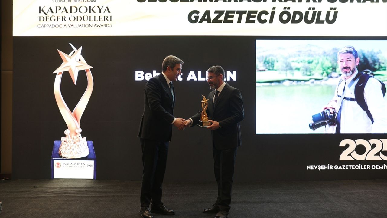 Anadolu Ajansı muhabiri Behçet Alkan, Kapadokya'nın kültürel, doğal ve arkeolojik zenginliklerini dünyanın önde gelen medya kuruluşlarına taşıyan güçlü görsel anlatımı ile 'Kapadokya'nın Tanıtımına Uluslararası Katkı Sunan Gazeteci Ödülü'nü Kapadokya Alan Başkanı Aydın Cem Aslanbay'dan aldı.