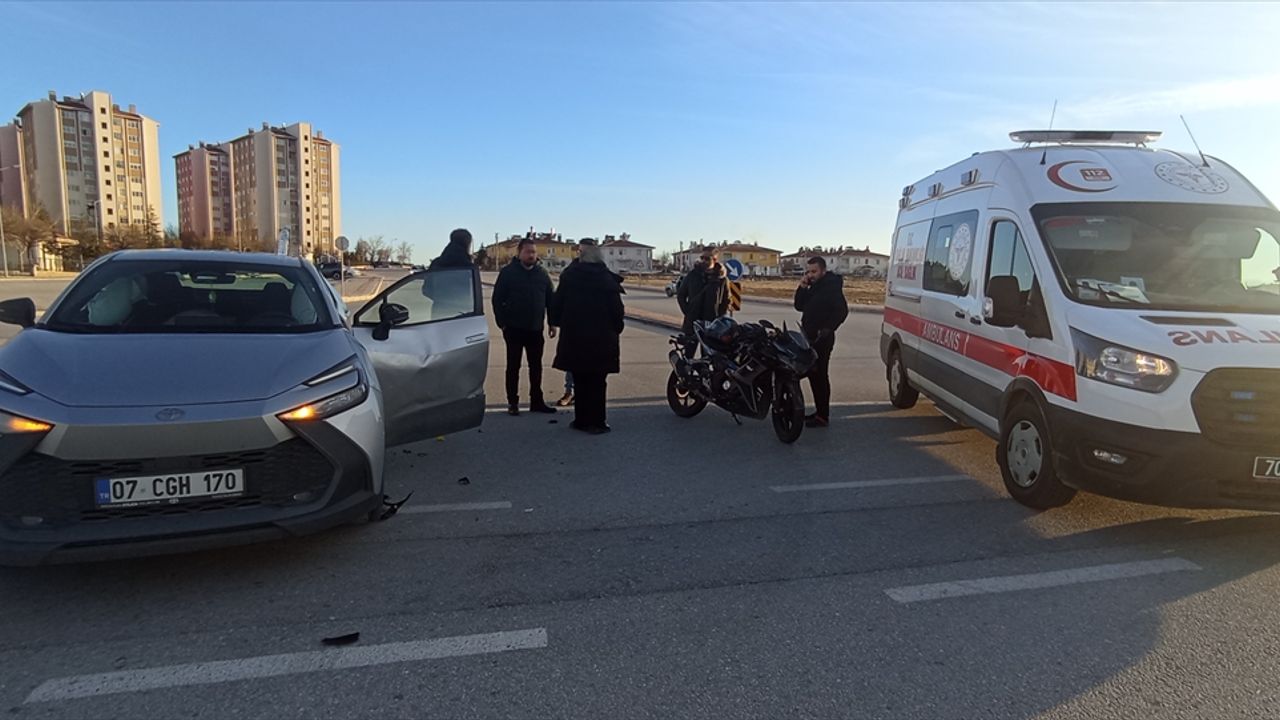 KARAMAN (AA) - Karaman'da ciple çarpışan motosikletin sürücüsü yaralandı.