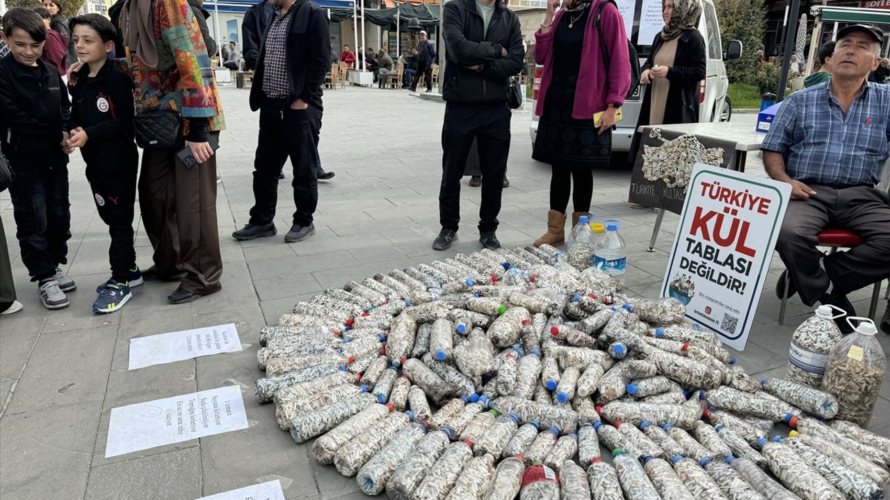 Etkinlik kapsamında, pet şişelere doldurulan izmaritler, kent merkezindeki İsmet Paşa Caddesi'nde sergilendi.