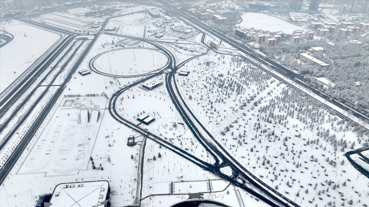 Kentte iki gündür etkili olan kar yağışının ardından, Recep Tayyip Erdoğan Millet Bahçesi beyaz örtüyle kaplandı.