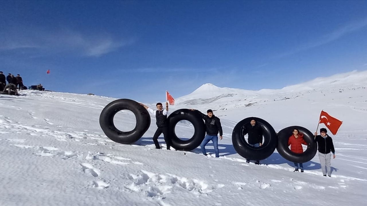 KAYSERİ (AA) - Kayseri'nin Develi ilçesindeki kırsal mahallede yaşayan vatandaşlar, traktörlerinin iç lastikleriyle kayak yaparak çocuklar gibi eğlendi.