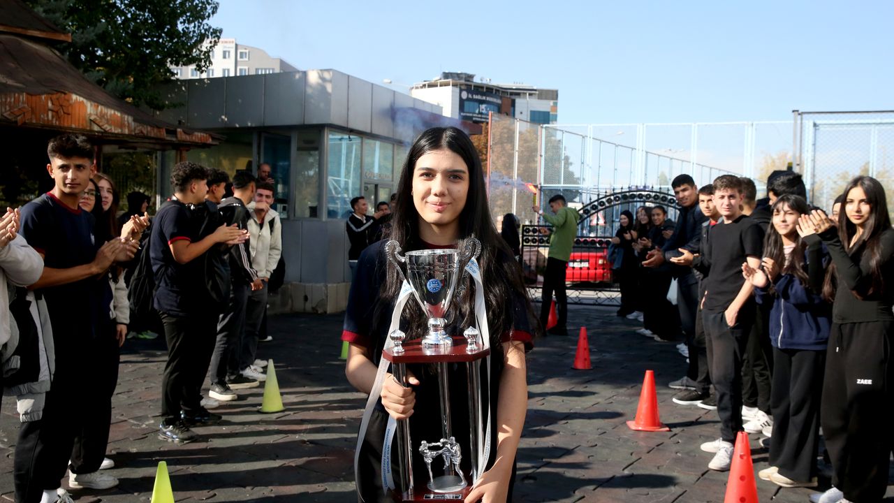 Şampiyona sonrası memleketine dönen Uzunçakmak, okuldaki arkadaşları ile öğretmenleri tarafından konfetiler ve alkışlar eşliğinde tezahüratlarla karşılandı.