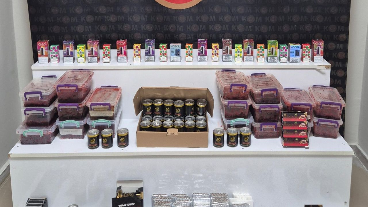 Bu kapsamda kent merkezinde M.A'ya ait iş yerinde arama yapan ekipler, 12 elektronik nargile, 11 elektronik nargile kiti, 1260 dal doldurulmuş makaron, 20 kilogram nargile tütünü ve 112 farklı ebatlarda bandrolsüz ürün ele geçirdi.