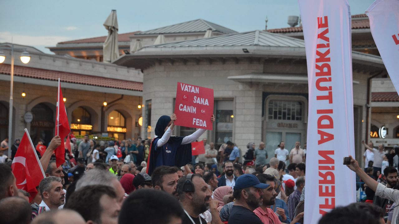 Meydanda toplanan kalabalık, Cumhurbaşkanı Recep Tayyip Erdoğan'ın Ankara'daki 'Zaferin Adı Türkiye' programında yaptığı konuşmayı dinledi.