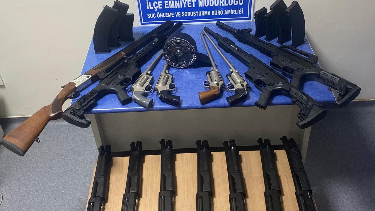 Araçta yapılan aramada 15 ruhsatsız av tüfeği ele geçirildi.