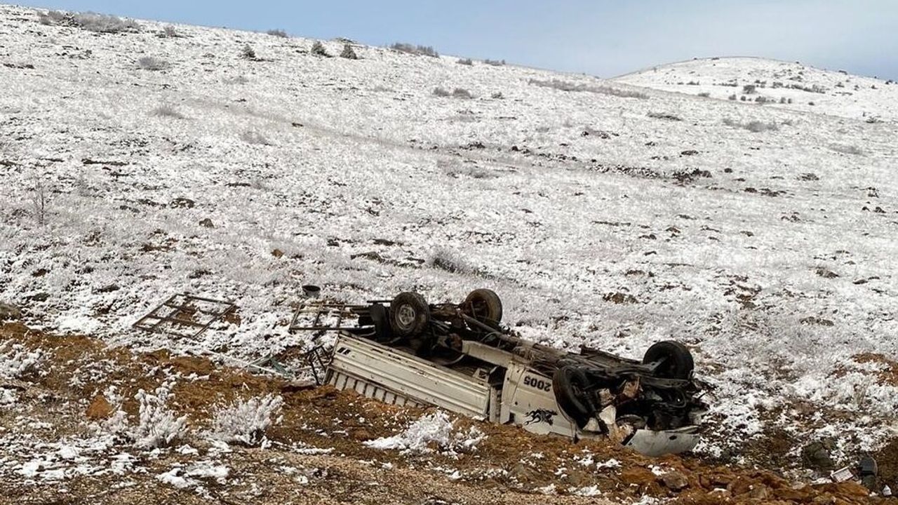 Hüyük'ten Konya yönüne giden sürücüsünün kimliği belirlenemeyen 31 TH 983 plakalı kamyonet, Karaali Mahallesi yol ayrımı yakınlarında şarampole devrildi.