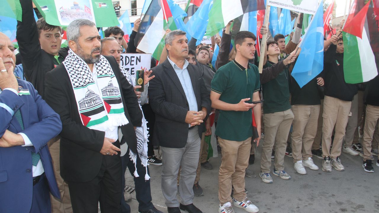 Anıt alanda bir araya gelen ortaokul ve lise öğrencileri, ellerinde Türk ve Filistin bayraklarıyla Orman Kavşağı'na kadar yürüdü.