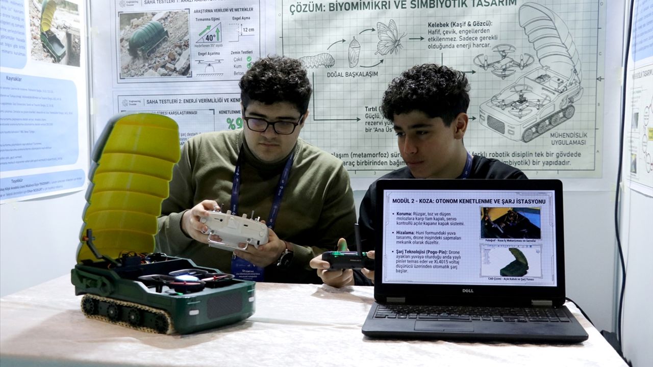 KAYSERİ (AA) - ERGÜN HAKTANIYAN - Kayseri'de lise öğrencileri, tırtılın kelebeğe dönüşümünden esinlenerek özellikle afet bölgelerinde zor noktalara ulaşımda kullanılabilecek dronlu robot geliştirdi.