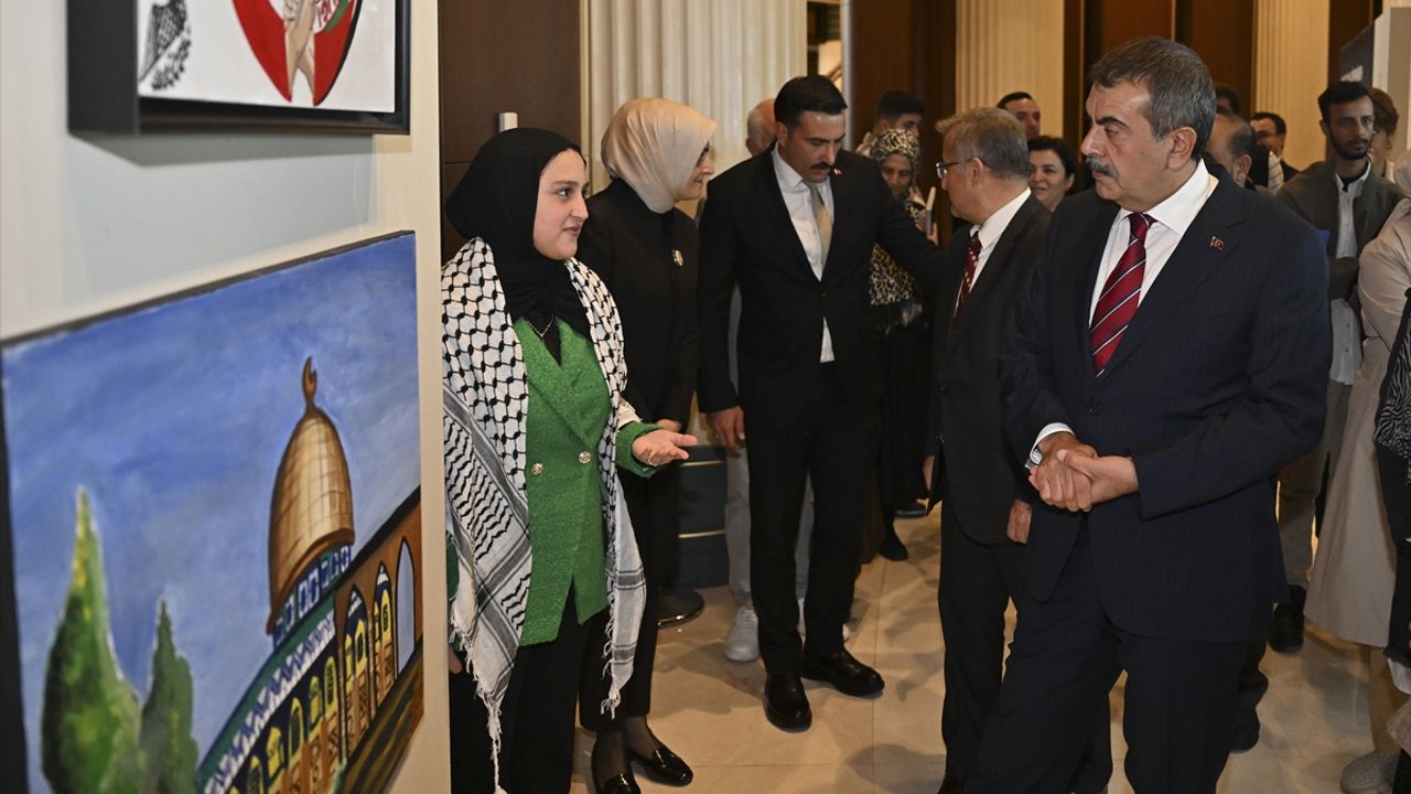 ANKARA (AA) - Milli Eğitim Bakanı Yusuf Tekin, Türkiye'ye gelen Filistinli öğrencilerin yaptığı eserlerden oluşan 'Umut Acıya Direnirken' adlı resim sergisini ziyaret etti.