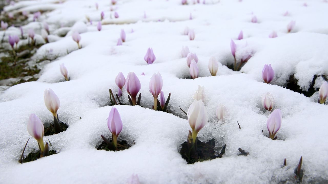 MUŞ (AA) - Muş Ovası'nda açan 'baharın habercisi' çiğdemler, kar yağışının ardından beyaz örtü altında kaldı.