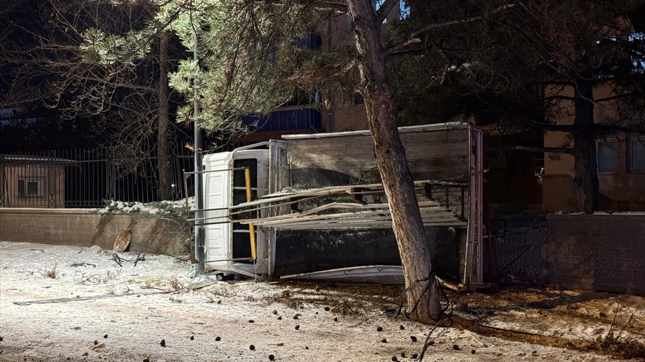 Çarpmanın etkisiyle savrulan kamyonet yol kenarında bulunan Jandarma At ve Köpek Eğitim Merkezi Komutanlığı'nın duvarına çarparak devrildi.