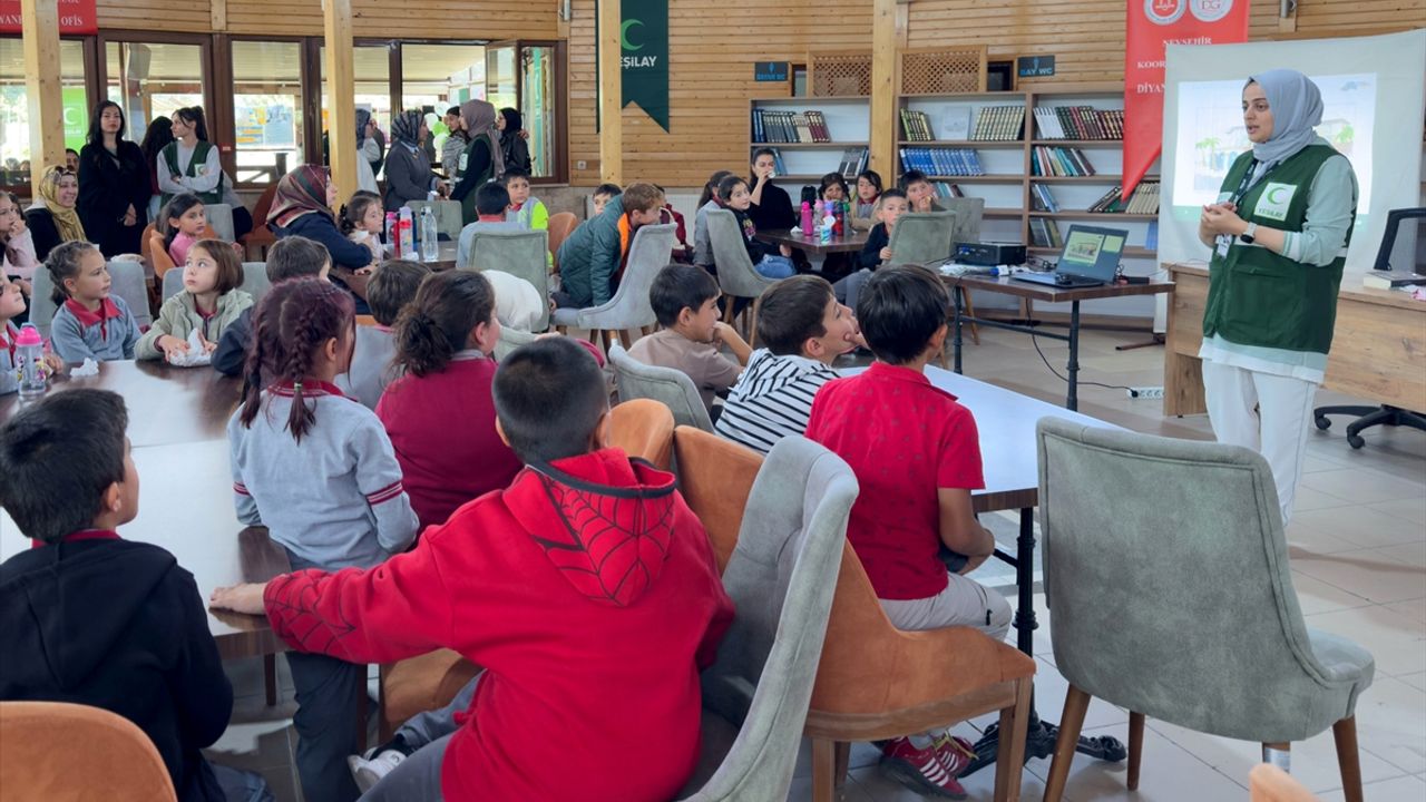 Yeşilay'ın kuruluş amacını anlatan animasyon filminin izletildiği programda, çocuklara bağımlılıkla mücadele ve sağlıklı yaşam konularında sorular yöneltilerek interaktif bir farkındalık çalışması yürütülüyor.