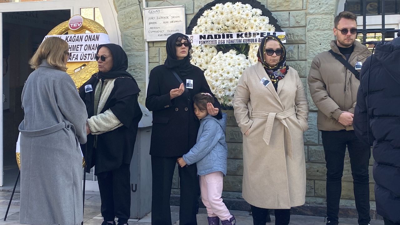 Cenaze törenine katılan oyuncu Burcu Özberk, cami bahçesinde taziyeleri kabul etti.
