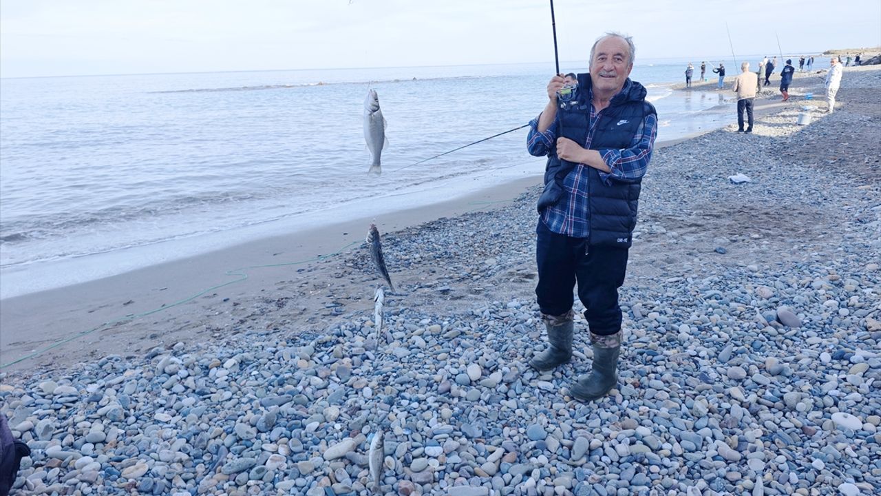 Kıyıya yaklaşan balıkları fark eden amatör balıkçılar, oltalarıyla sahile gelerek balık avlamaya başladı.