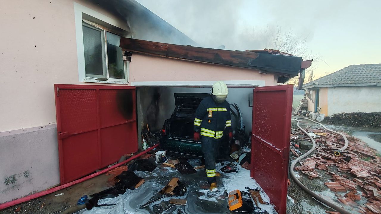 Söndürülen yangında garajda hasar oluştu, bir otomobil kullanılamaz hale geldi.