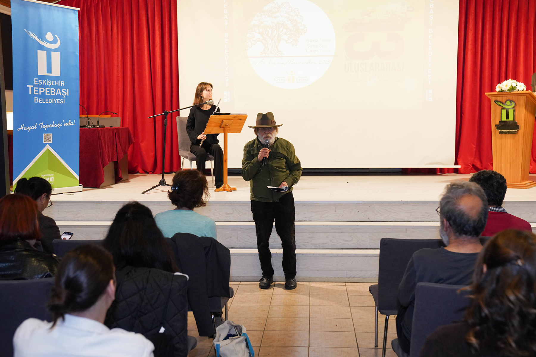 Oturumun sonunda Uluslararası Eskişehir Pişmiş Toprak Sempozyumu Sanat Direktörü Prof. Bilgehan Uzuner tarafından Uluslararası Eskişehir Şiir Buluşması Direktörü Haydar Ergülen’e kendi çizdiği Eskişehir tren garının resmini hediye etti.